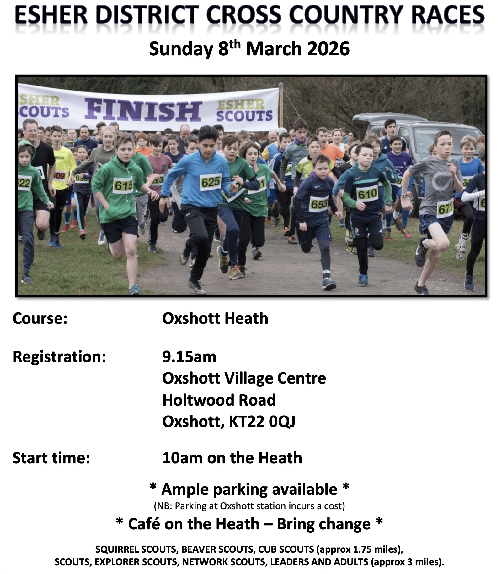 The Scouts, Explorer Scouts, Network Scouts and Service Crews course is approx. 3 miles.